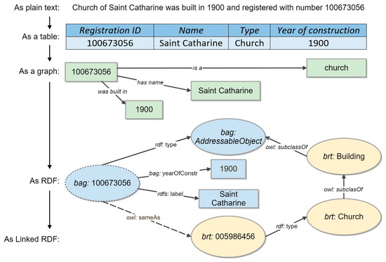 - van den Brink, L.; Janssen, P.; Quak, W.; Stoter, J. Linking spatial data: Semi-automated conversion of geo-information models and GML data to RDF. Int. J. Spat. Data Infrastruct. Res. 2014, 9, 59–85. [Google Scholar]
