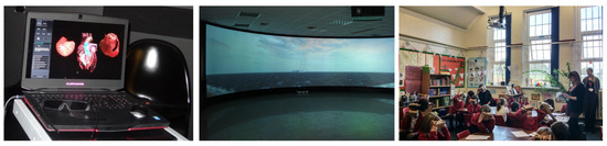 - Klimenko, S. Virtual planetarium: Learning astronomy in virtual reality. In Proceedings of the EdMedia+ Innovate Learning Association for the Advancement of Computing in Education (AACE), Waynesville, NC, USA, 21–26 June 2004; pp. 2154–2157. [Google Scholar]