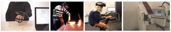 Selected examples that affect immersion level in VR-based education. From left: Immersive system based on wearable devices for providing on-the-job training [55]. Tilt Brushas: a tool in VR education [56]. Virtual Reality Cycling Platform [61]. Haptic feedback system used with Simodont for teaching dental procedures [60].