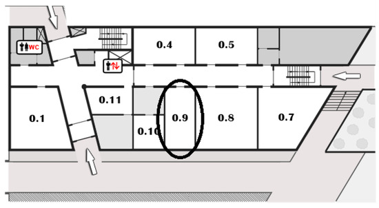 Map of the place of measurements.0.x:0 for the ground floor and x is the number of the office.