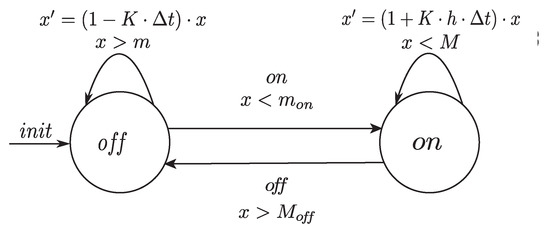 - Alur, R.; Courcoubetis, C.; Halbwachs, N.; Henzinger, T.A.; Ho, P.-H.; Nicollin, X.; Olivero, A.; Sifakis, J.; Yovine, S. The algorithmic analysis of hybrid systems. Theor. Comput. Sci. 1995, 138, 3–34. [Google Scholar] [CrossRef]