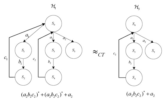 - van Glabbeek, R.J. The linear time-branching time spectrum. In Proceedings of the 1st International Conference on Concurrency Theory (CONCUR ’90), Amsterdam, The Netherlands, 27–30 August 1990; pp. 278–297. [Google Scholar]