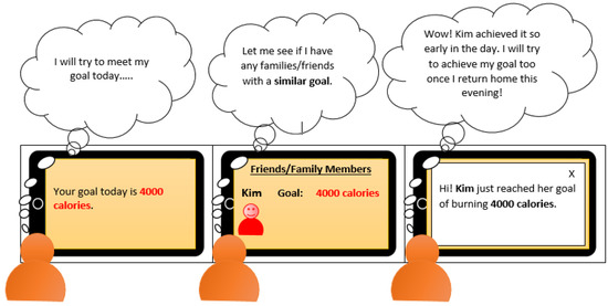 - Munson, S.; Consolvo, S. Exploring Goal-setting, Rewards, Self-monitoring, and Sharing to Motivate Physical Activity. In Proceedings of the 2012 6th International Conference on Pervasive Computing Technologies for Healthcare (PervasiveHealth) and Workshops, San Diego, CA, USA, 21–24 May 2012; pp. 25–32. [Google Scholar] [CrossRef]