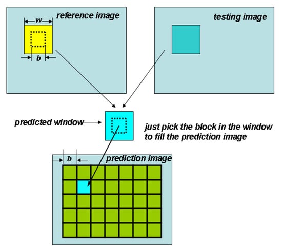 - For each non-overlapped block, pick the prediction windows in the images. The prediction window size is larger than the non-overlapped block.
