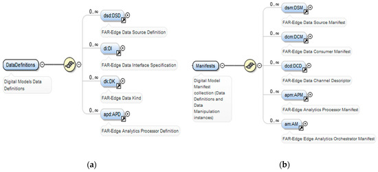 Data Definitions and Manifests Subschemas. (a) Factory Data Definitions and Manifests Subschemas (b) metadata Definitions and Manifests Subschemas.