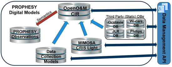 Figure 4 illustrates how the CIR database links different databases for predictive maintenance, including: (i) The PROPHESY project database where maintenance data sources are modelled based on the constructs described in the previous paragraphs (e.g., constructs like DSD, DI and DK); (ii) A database containing maintenance datasets compliant to the MIMOSA Open Standards for Physical Asset Management [25] and more specifically to the MIMOSA CRIS (Common Relational Information Schema (CRIS) schema; (iii) Various proprietary third party databases maintained by different partners of the PROPHESY project consortium. The CIR infrastructure links the information about objects and entities that are referenced by more than one database, which enables analytics over enhanced datasets. Using the CIR, an application developer can access information about the full context and observations that relate to an object, regardless of the repository where these observations reside. Note also that the CIR implementation adheres to standards prescribed by the MIMOSA Open Standard for Operations and Maintenance (Open O&M), which ensures neutrality, openness and technological longevity. In practice, the CIR implements an XML schema and a relational database in line with the specifications and the open source libraries of the Open O&M that can be found in the MIMOSA organization’s GitHub.