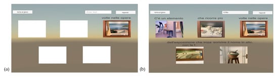 By correctly answering all the questions, the user will eventually be able to read the entire final question as shown in the right part (b) of Figure 1. The last question regards the file rouge that links all the works of art presented in the collection. By correctly answering also to the final question, the app will present a message of victory and invite users to the next experience.