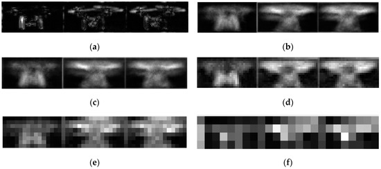 Figure 5 shows that information of image after downsampling of different number and NMFsc dimension reduction. As shown in Figure 5b,c, the information of image are reserved basically after downsampling once or twice. However, as the number of downsampling increasing, more and more information about image is lost. Hence, it is best to perform downsampling once or twice, whereby it reduces the dimensions while preserving the basic information of the image.