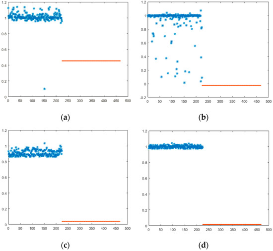 Probability distribution of different methods: (a) PCA; (b) FLD; (c) NMF; (d) NMFsc.