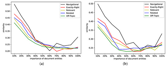 The relevance between the order of entities and similarities of document entities: (a) Entities are sorted by TextRank; (b) Entities are sorted by TF-IDF.