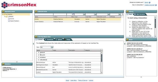 - Leal, J.; Queirós, R. CrimsonHex: A Service Oriented Repository of Specialised Learning Objects. In Enterprise Information Systems; Filipe, J., Cordeiro, J., Eds.; Springer: Berlin/Heidelberg, Germany, 2009; Volume 24, pp. 102–113. [Google Scholar]