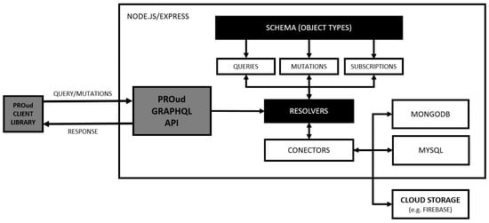 On the server side, the PROud engine is installed as a docker container on a server machine. The engine’s mission is to receive query and mutation requests, resolve them by interacting with the associated cloud storage, and respond, with the filtered data, back to the client.