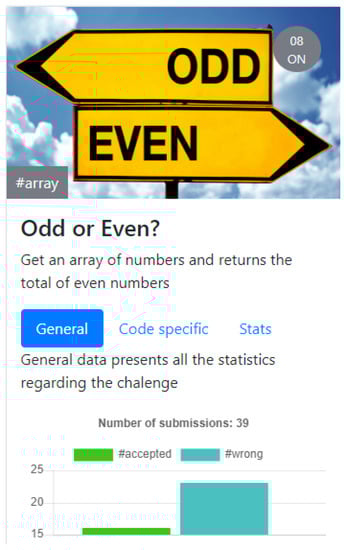 One of the great trends of the last decade is the use of gamification in several types of environments [9,10], including online programming learning environments [11]. The goal is simple: keep students motivated and encourage more practice in order to gain programming skills. Although it is a legitimate goal, the gamification used is limited to a set of badges that are earned when the student completes a particular module or a set of rankings, to compare the students’ performance in the course. Despite being a step forward in the gamification of these environments, there is still much more to explore in order to stimulate the students’ competitiveness [12]. In order to do this, our proposal is to gather information about the usage data of the programming exercises. Such information can then be stored in a central storage and, through a programming interface, can be used in a flexible way, as input to various components of the learning system or in the construction of specific gamification assets (e.g., leaderboards, achievements, statistical panels).