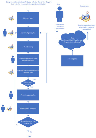 The role of the game in the service is important as the game provides data about the progress, creates motivation, and can be used flexibly (as it is not dependent on a time or place). Entertainment and the ability to observe progress play important roles in creating and maintaining the player’s motivation. In addition, the gaming data is important to the professionals, who can use the data to support decisions about the player’s memory condition, as well as in evaluating the game plan and other related service needs.