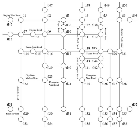 The local road network structure involved in the experimental data set is shown in Figure 3, where the hollow circles represent various intersections, the sides of the hollow circles are marked with the unique identification number of them, and the solid lines represent the road sections.