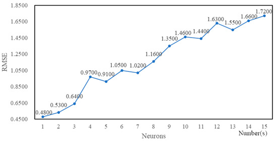 Firstly, we fix the time of epoch to 10 and tested the trend of RMSE when the number of neurons changed. The results are shown in Figure 4 and Figure 5.