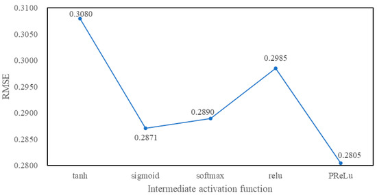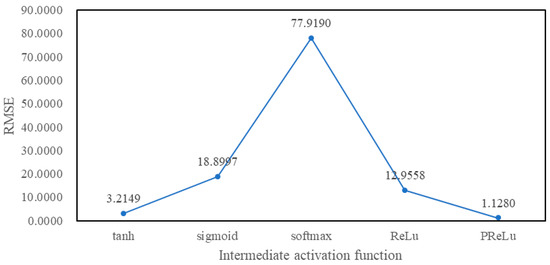 As shown in Figure 11 and Figure 12, there is the minimum RMSE value when the intermediate activation function is PReLU, whether Sample1 or Sample2. Hence, the intermediate activation function is set to PReLU in subsequent experiments.