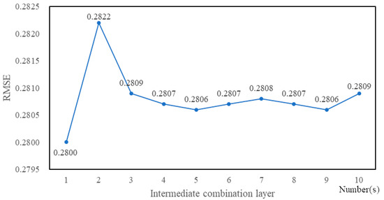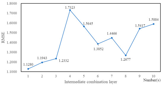 RMSE values of different intermediate combination layer numbers for Sample2.