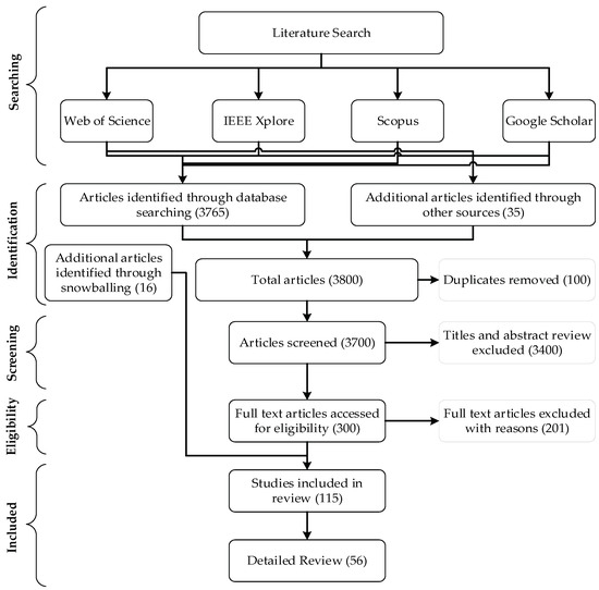 The literature has been searched from the Web of Science, IEEE Xplore, Google Scholar, and Scopus. These databases cover topics related to energy optimization and scheduling and have enough literature. The searching criteria is based on different factors, as mentioned in the QRs. The search strings defined in Table 1 have been identified and used to search each database using Mendeley, Google Scholar, and Endnote.