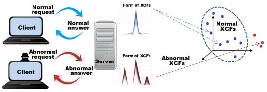 The XCF form shows the uniqueness of the request-response pair when the web server processes a normal request. Determining the space of normal XCFs will make it possible to identify anomalous XCFs that go beyond its limits. Figure 1 shows a scheme of an anomaly detection method based on XCFs. The scheme also shows the difference in the form of XCFs when the web server processes normal requests and when processing anomalous requests with attacks.