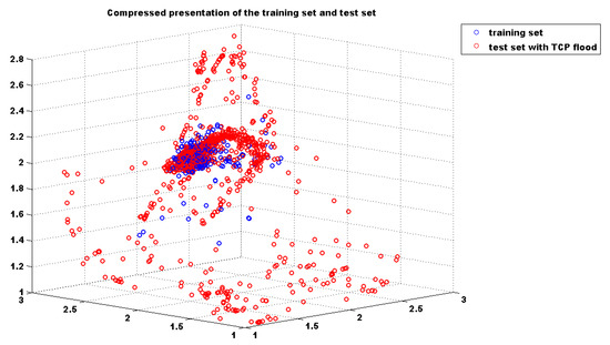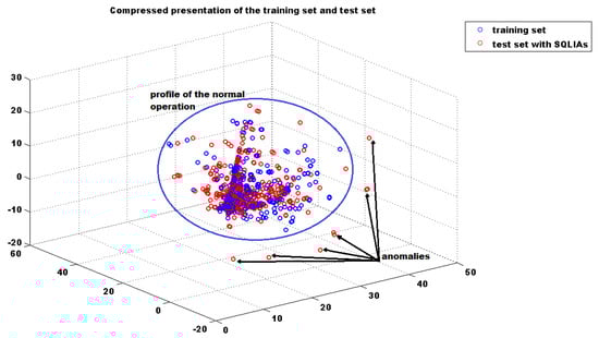 It can be seen that most of the XCFs from the test set were recognized by the autoencoder and referred to the field of normal XCFs that characterize the profile of normal operation. Some XCFs that were separated from the selected normal area were found by the autoencoder as abnormal; some of them, indeed, characterized the server’s response to malicious SQL queries, and the other part the false positives.