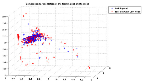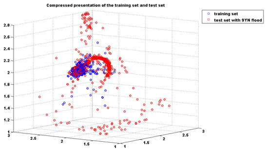 The 3D map of “bottleneck” neurons proves our suggestion: normal traffic is marked by points in the center of the map, and many points of anomalies are distributed on the margins of the 3D area (Figure 21).