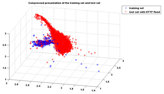 The 3D map of “bottleneck” neurons displays a dense cluster of points obviously related to the attack apart from normal traffic points (Figure 24). However, a part of the normal traffic area intersects with the part of the HTTP flood traffic.