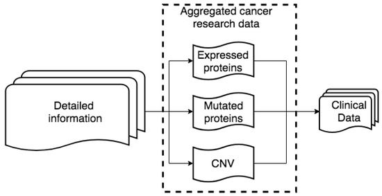 Two datasets from breast cancer studies are used in the discussed study. The first dataset contains profiles of 498 patients as well as corresponding clinical information. The second breast cancer dataset also contains genomic profiles data and clinical information for 2000 patients. Different types of available data and information sources are shown in Figure 1. The same type of information is provided by different sources in different formats. We integrate all data both horizontally and vertically.
