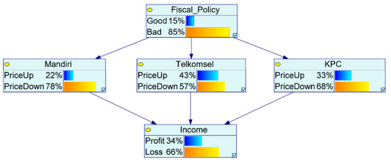 From this case, it can be seen that two-step reasoning provides different results than the simultaneous reasoning of ByNowLife: two-step reasoning returns Telkomsel while simultaneous reasoning by ByNowLife returns Indocement. This is because through two-step reasoning, the BN system cannot calculate probability values for the Indocement node because it does not exist in the BN document.