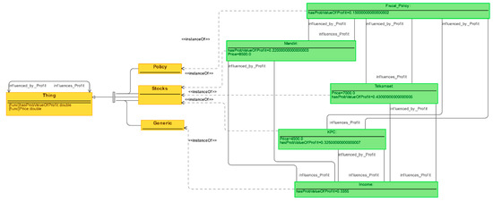 Investment Problem Case—Scenario 2. In Case #1 concerning an Investment Problem (see Section 4.1), there was another individual in the ontology named “Indocement” (as depicted in Figure 11), but in the probabilistic knowledge base, no Indocement node was found (see Figure 4). The resulting reasoning flow from the query in Section 4.1 is shown in Table 5.