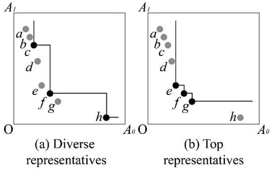 - Lin, X.; Yuan, Y.; Zhang, Q.; Zhang, Y. Selecting stars: The k most representative skyline operator. In Proceedings of the 23rd International Conference on Data Engineering (ICDE’07), Istanbul, Turkey, 15–20 April 2007; pp. 86–95. [Google Scholar]