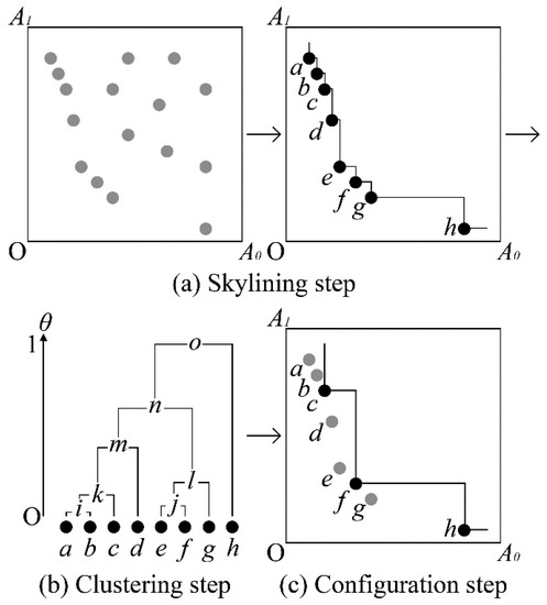 We first provide an overview of the proposed method in Section 3.1. Further, in Section 3.2, we demonstrate how we find the skyline points. In Section 3.3, we describe the hierarchical agglomerative clustering method with examples. In Section 3.4, we explain the configuration step in detail. Finally, in Section 3.5, we provide a theoretical analysis of the proposed method.