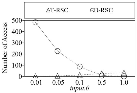 4.2.8. Experiment 8. Comparison of Number Of Cluster Accesses on Synthetic Dataset with varied input.θ