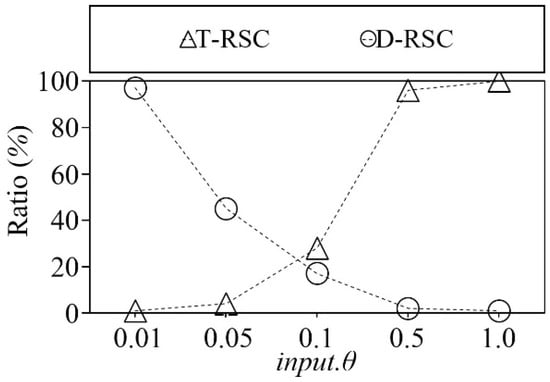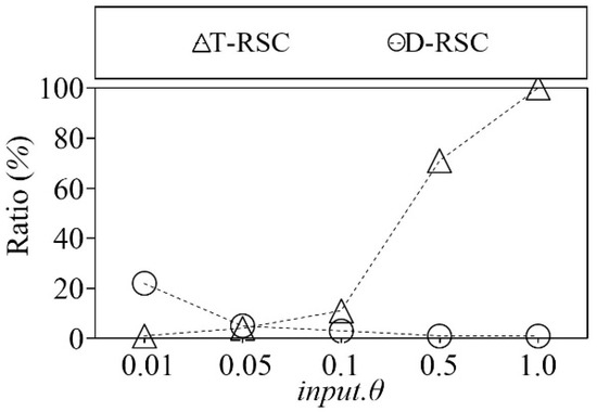 Ratio of RSC result on synthetic dataset with varied input.θ.