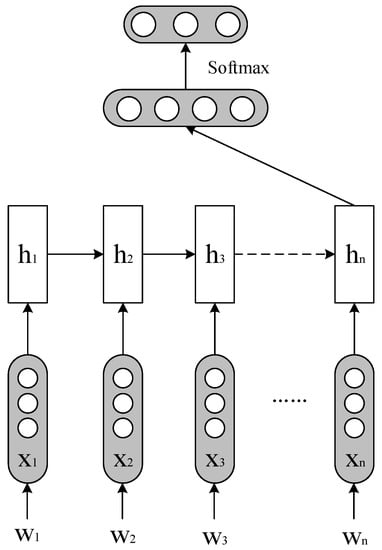 We typically use the neural models to learn the representation of a microblog post. Then, text classification is performed based on the representation of the microblog post. These deep neural network models are based on the fact that each word is represented as a low dimensional, continuous, and real-valued vector, which is also known as a word embedding [,]. All the word vectors are stacked in a word embedding matrix , where is the dimension of word vector and is vocabulary size. To make better use of the semantic and grammatical associations of words, the values of the word vectors are pre-trained from the text corpus with the word2vec embedding learning algorithm []. Given an input microblog s, we take the embeddings for each word in the microblog to obtain the first layer. Hence, a microblog post of length N is represented with a sequence of word vectors .