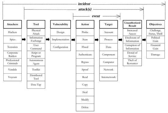 - Howard, J.D.; Longstaff, T.A. A Common Language for Computer Security Incidents; Sandia National Labs.: Livermore, CA, USA, 1998. [Google Scholar]