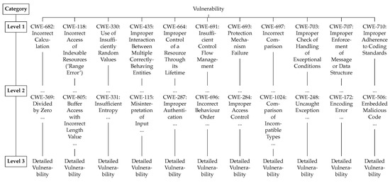 Vulnerabilities described with the common weakness enumeration (CWE) at different abstraction levels.