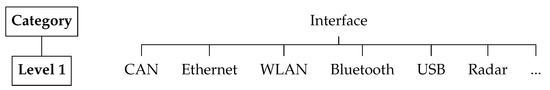 Behind each interface a certain technology (level 1) is located which an attacker must use to communicate with the attack target. Due to the fact that the interface technologies’ complexity varies widely, this category provides a valuable input for estimating the attack effort and thus for determining the feasibility of attacks. That is particularly important for risk assessment because estimating the effort of an attack is difficult and typically highly experience-based. In addition, this description provides valuable input for automating test case generation. With knowledge about the interface technology that is necessary for an attack, required driver layers (hardware abstraction layer (HAL) [75]) can be automatically derived and provided for a test case which can reduce the effort for test setups.