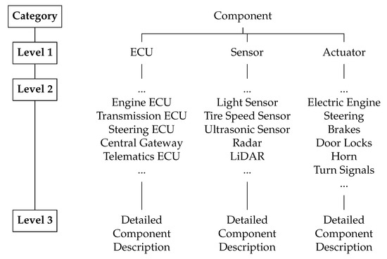 As we show in Section 2, security taxonomies and vulnerability databases that describe security incidents and vulnerabilities exist mainly in the information technology (IT) area. However, there is the problem that these have not been designed for application in automotive development processes or security testing. Furthermore, they do not consider that vehicles are cyber–physical systems (CPSs) [23], based on control systems with sensors and actuators, that can have a significant impact on a vehicle’s safety and its operating environment. As a result, they provide only a limited amount of information and are less suitable for supporting threat analysis and risk assessment (TARA) [18] or automotive security testing. Consequently, existent description models can usually not be transferred to the automotive domain. Thus, there is currently no publicly available description model for security attacks in the automotive sector.
