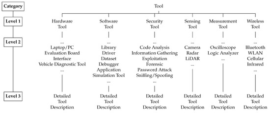 Level 1 elements allow analysts to make an initial assessment of attack complexity which is part of risk assessment. For example, if an attack is categorized as a hardware attack, it can be assumed an attacker requires physical access to the system and will most likely need tools to interact with hardware. On the other hand, wireless attacks would indicate an attacker does not require physical access and could potentially launch a remote attack. In addition, the seven subcategories can be used to identify a general test setup for a security test. For instance, environment attacks can be used to estimate that the environment around a test object must operate in a special manner (e.g., manipulated traffic signs).