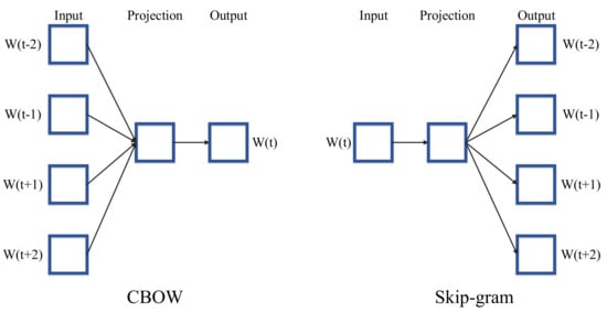 The continuous bag-of-words (CBOW) architecture predicts the current word based on the context, and the Skip-gram predicts surrounding words based on the given current word [61].