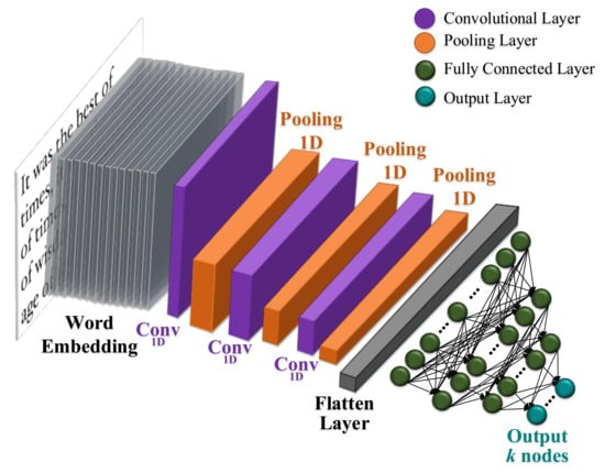 - Zhang, X.; Zhao, J.; LeCun, Y. Character-level convolutional networks for text classification. Adv. Neural Inf. Process. Syst. 2015, 28, 649–657. [Google Scholar]
