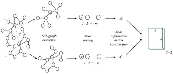 - and are integrated into data with the size of . If the node pair (x, y) has a link in the original network, it is labeled as 1; otherwise, it is labeled 0.