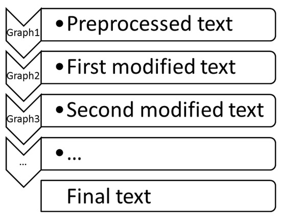 Figure 3 presents the skeleton of a cascade of Unitex graphs. We start with the preprocessed text and the first graph (the graph of Figure 1) modifies it. Now the XML tags are considered as multiword units with the category XmlTag. We parse this modified text with the second graph (the graph of Figure 2) that replaces the URLs by multiword units with the category ref. This continues until the last graph of the cascade, which produces the final text.
