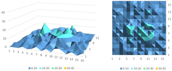 After a simple linear calculation, it can be concluded that the longitude is between (104.001867, 104.144877) and its latitude is between (30.6220475, 30.7354745). When obtaining a separate high-hotspot area, we have meshed the area into smaller grids, which can help obtain more refined prediction results and give a stronger guidance to drivers. We have divided the hotspot area into 256 smaller areas and recreated the travel demand map datasets of high-demand areas at different times by using historical travel records. We have also used the OC-CNN model for training and finally obtained the following training results, as is shown in Figure 10 and Figure 11.