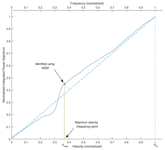 This method is also dependent on IPS. Connect the start point and the end point of IPS to get the reference line. The maximum velocity point is estimated as the point in the IPS which is farthest from the reference line. MGM is the modified method of GM, however this method also has its deficiency. MGM is prone to overestimate the point of max velocity in the case of narrow-band signals. The method is shown in Figure 3.