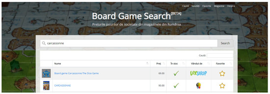 Figure 2. Results page for the board game search website: http://boardgamesearch.h23.ro.