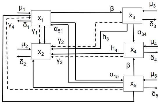 Defining the state vector and with the control vector, the following model, shown in Figure 1, is proposed: