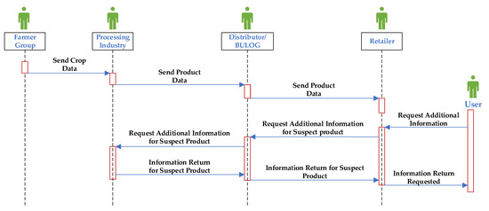- Hu, J.; Zhang, X.; Moga, L.M.; Neculita, M. Modeling and implementation of the vegetable supply chain traceability system. Food Control 2013, 30, 341–353. [Google Scholar] [CrossRef]
