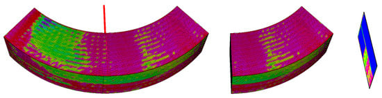 Finite element data visualization comprises surface rendering and volume rendering. The basic concept of surface rendering method is approximating the object surface by using planar meshes. The specific method involves pre-processing the data to obtain a triangular surface, then using polygon approximation for fitting, and finally using a graphics algorithm to draw the relevant surface. There are two main methods for surface rendering. The first is a polygon-oriented one [], a method for which the surface contour is calculated and then the object surface is spliced according to the contour. The second method is grid-oriented [,,], which uses triangle splicing to form surfaces, but these triangles are located in a single cube element. According to the adjacent topological relationship of the cube element surface, a polygon data set is constructed and the surface is then generated quickly. However, when the shared surface of neighboring volume element has four intersections, surface calculation errors will occur. In response to issues such as ambiguity surfaces, Cline et al. decomposed the cube element to the size of a pixel, directly drew the surface with pixel points, and proposed the decomposition cube method []. The more common surface rendering applications includes contour lines, color cloud maps, and slices. Although the surface rendering method appears earlier and is widely used, it can only display the surface without showing the internal information of the data field.